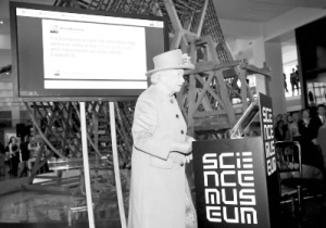 伊丽莎白二世当天在伦敦科学博物馆为这场展览揭幕。在600多名宾客“围观”下,伊丽莎白二世摘下一只手套,在一台平板电脑上打字并发出了微博。英国王室的官方“推特”账号随后发布了女王“发推”的照片。