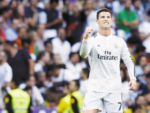 本报综合消息 10月26日凌晨,西甲第9轮上演国家德比,皇马在开场就落后的情况下连扳3球,最终主场3∶1逆转巴萨。苏亚雷斯解禁后首秀并助攻内马尔闪电破门,C罗主罚点球扳平并打破巴萨联赛零失球纪录,佩佩、本泽马连进两球反超。