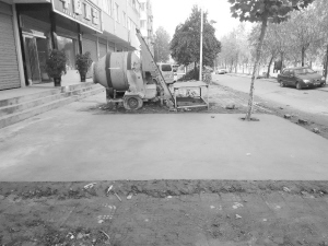 记者沿这条路向东行走到交通大道与建安路交叉口,一路上看到多家沿街门面房将经营范围“扩张”到人行道上,人行道彩砖受到不同程度的损坏。更有甚者,有几家门店还将人行道彩砖拆去,铺成水泥路。