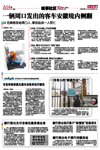 一辆周口发出的客车安徽境内侧翻