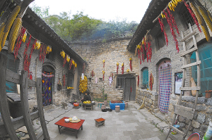 漫步在带有原始先民理念的古村民居中,1000多年前的历史沉淀,经过多少代承传的古院落,向我们讲述着先民们的生产、生活和他们的精神家园:就古村的全貌看,依山而建,背依山崖,避风向阳,相对分散,形成一个一个居住的单元体。用来加工粮食的工具主要是石碾和石磨,石碾为共用之器具,石磨几乎家家都有。在先民的理念中,石碾和石磨分别象征青龙和白虎两大镇魔压邪之物,所以石碾一般在村子中心位置的偏左方,石磨则在村民自家院子中心的偏右方。就单个家居看,房间的功能比较单一,或作卧室,或作厨房,或作仓库。室内空间狭小,进门就是炕或灶台,窗户很小,除了透入光线外,更多是出于安全的考虑,窗棂多是直立的木条。这种直棂窗,是唐朝的建筑风格。就院落看,有大有小,随空地而定。比较普遍的是院墙都不高,一般不足一人高。院门都不高大,有的至今还是栅栏式,村民们说,他们的院墙和门根本就不是用来防人的,只是为了阻拦牲畜。朴实的话语透露着真诚、信任、和谐与淳朴之风。