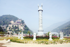 进入景区,首先映入眼帘的是中和广场。广场的中心是太极图,太极图的外围有3个圆形大环,内容分别是十二时辰、二十四节气和卦象图名,最大的圆环直径28米,紧贴圆形的是方形框,喻示古人对世界的认识:天圆地方。中间一个大大的“中”字,是“中和”的意思。