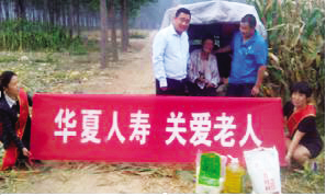 在2014年的重阳节,华夏保险太康支公司“关爱老人”在行动!公司经理李国全带领五位内外勤同仁携手两位社会爱心人士组成志愿者队伍,看望了贫困孤寡老人。