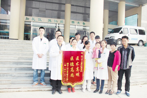 10月22日,一阵“噼噼啪啪”的鞭炮声打破了清晨的宁静,王俊礼夫妇把一面印有“医术高明、医德高尚”的锦旗送到了市儿童医院副院长王芳、儿科主任李萍手中,感谢全体医务人员的救命之恩。