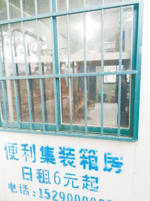 昨天下午,记者在东新区一处工地内看到,一个带有“便利集装箱,日租6元起”字样的板房立在工地一隅。这间板房只有半个集装箱大小,有一扇门和两扇窗。隔窗往里看,里面摆放着4张上下床铺,可供8人居住,目前已有4张床上摆上了被褥。房间内干净整洁,物品摆放也非常整齐。附近工地的工人告诉记者,这里的住户是几名来自上海的工人,他们白天在工地上工作,到了晚上这里就是他们临时的家。