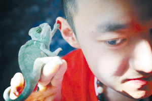 7.吉林省长春市,高冠变色龙用爪子抓着小川的耳朵,仿佛在与主人交流。