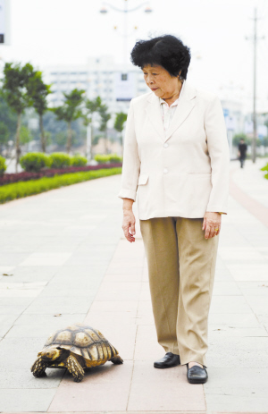 6.海南琼海,蒙大姐陪乌龟一起“散步”。
