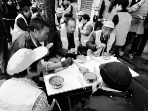 31日6时30分许,记者在位于建设大道上的免费爱心早餐店看到,环卫工人陆续来到这里,在门前的桌子旁坐下,显得很有秩序。“这是爱的奉献,这是人间的春风……” 不一会儿,在歌曲《爱的奉献》中,早餐开始。爱心志愿者有的端粥,有的端胡辣汤,有的拿筷子……忙得不亦乐乎。