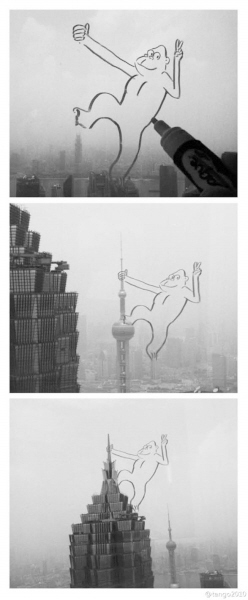 闷在办公室好无聊,不妨自己找找乐子。拿起记号笔,简单几下就完成了,不过前提是你的办公室要够高。