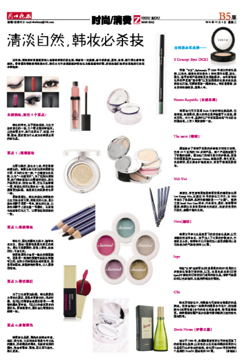 韩国彩妆品里,唇釉色彩相当丰富,桃红、荧光粉、大红和朱红都是今年大热的颜色,所有潮流的唇色,包括有较深的颜色,都会有唇彩、唇釉,而且深不透色,持久度高。