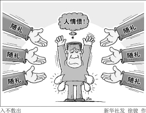 “我们家去年一年收入才2万多元,光送礼就送了近3万元。”重庆市城口县庙坝镇兴旺村村民李习琼谈到“送礼”很无奈地说。