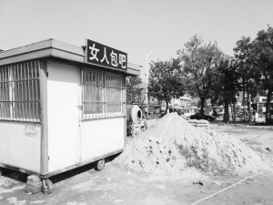 昨日上午,记者来到中州大道与德化街交叉口附近,看到刘先生所说的板房位于路口西侧。这个板房下面轮子,房门紧闭,但门头招牌上的“女人包吧”非常显眼(如图)。