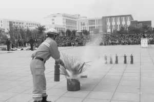 11月7日,郸城县“找火灾隐患 保家庭平安”2014年“119”消防宣传月启动仪式在该县实验中学新校区举行,近8000名师生参加。张本宝 安稳 摄