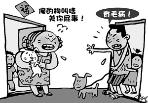 近来,武汉东西湖区姑李路门对门的两户邻居,为了两只狗闹得很不愉快。先是章婆婆买来一只狗,取名与对门肖先生家女儿小名同音。肖家多次沟通无果,前日,肖先生也买回一只狗,取名与章婆婆外孙的小名同音,两家矛盾升级。