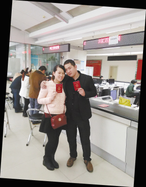 昨天,在川汇区民政局婚姻登记处,一对刚领了结婚证的新人。