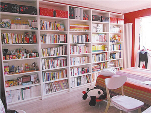窗帘选用了同床品色调一致的大红色,大朵大朵的印花布满整个窗户,MIFFY在窗下花“巨资”购置一台按摩椅,为的是在午后的阳光下在这里懒洋洋地消磨时光。MIFFY说,在这里读书,写字,看电影,把时光消磨在想做的事情上,真心感到快乐。