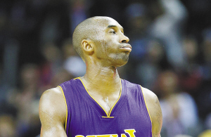 当地时间11月11日,湖人队球员科比·布莱恩特在球队输掉比赛后的反应。当日,在2014-2015赛季NBA常规赛中,洛杉矶湖人队客场以102∶107不敌孟菲斯灰熊队。