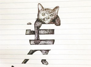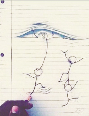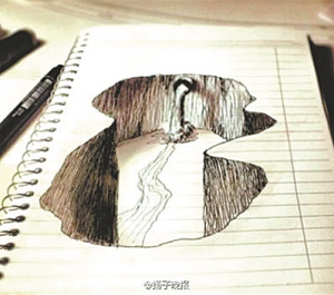 利用作业本上的线条也能画出立体感十足的图画,超赞的创意。