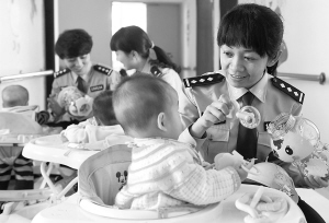 11月11日,昆明铁路公安局开远铁路公安处的民警来看望被解救的婴儿,并为他们带来了玩具等物品。
