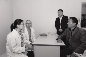 澳大利亚眼科专家瑞查德,马来西亚眼科专家洪君翔向患者询问病情。