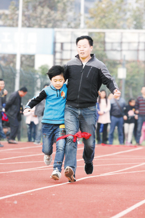 当天的活动内容有两人三足、袋鼠跳、运气球、滚铁环、双人跳绳等。