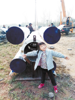 图二:一名小朋友在“长征二号F运载火箭”模型前留影