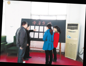 为了彻底解除记者心中的疑惑,这位工作人员还带记者到三楼会议室,只见屋内一黑板上写有“学习交流”字样,并且贴有部分工作人员的学习心得,旁边几位工作人员正围在一起观看讨论(如图)。“单位每月收集我们的学习心得进行评比,写得好的就会贴在黑板上展览。大家忙完手头的活,都会上来瞧有没有自己的,再看看上黑板的文章有哪些地方值得自己学习借鉴,争取下一次自己的学习心得能出现在黑板上。”这位工作人员说。