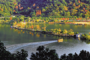 有人说过,湘湖游船,其特色不在景,而在“味”——从沈王家码头登船行舟,眼前碧波万顷,四周青山环抱,湖中小山耸立,偶尔穿过古色古香的亭台楼榭,在导游生动的诉说中,城山怀古、览亭眺远等“古湘湖八景”依稀可辨,秋风淡淡地吹拂发鬓,江南水乡的温婉细致就如同涓涓细流,不经意被吹进心田,那恰是都市人丧失已久的惬意与舒怀。