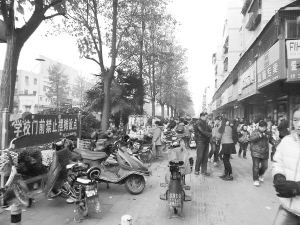 校园周边安全问题,一直是社会各界共同关注的焦点。10月23日,本报以《小吃摊“围攻”校门,谁来管一管》为题,用两个整版的篇幅对我市部分中小学门前占道现象严重,小吃摊的液化气罐、热油锅威胁学生安全一事进行了报道。10月30日,本报记者集中回访,又以《占道经营依旧 不见有人管理》为题再次关注校园周边安全问题。在广大师生及家长的迫切要求下,11月18日早上,本报记者再次对中心城区部分学校门口的安全隐患进行暗访,希望能引起有关部门的重视,将校园周边的安全隐患消除在萌芽状态。