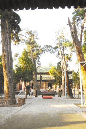 徜徉在天水伏羲庙,我们的目光不时被一株株苍劲高大的古树吸引。据说,庙宇内的古树栽植都有八卦之说,古柏是明代所植,原有64株,象征六十四卦之数。现存30余株,虽历经沧桑,仍挺拔苍翠,浓荫蔽日。庙内东侧墙角还有一株唐代所植的古槐,树干中空,老气横秋。此情此景,让我们感受到一派庄严肃穆的气氛,再加上庙内香烟缭绕,烛焰腾腾,不觉间我们对人文始祖更充满了崇拜之情。