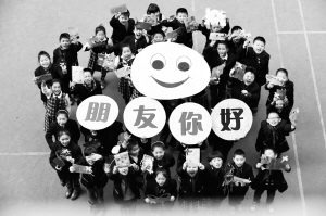 11月20日,合肥少儿艺术学校的学生手持自制的卡通笑脸和问候卡,表达祝福,传递温情。