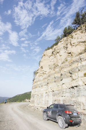 采访车驶上人迹罕至的山顶