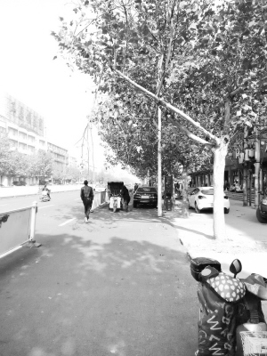11月20日,记者在周口市区八一大道南段东侧的人行道上看到,一根被风刮断的树枝悬空垂在距离地面两三米高的空中。附近居民告诉记者:“树枝已经在这儿垂了好几天了,没事时最好,万一掉下来,肯定砸着人和车。希望有关部门快来管一管。”
