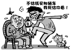 安徽阜阳市张某30多岁,已是3个孩子的父亲。张某自幼受父母溺爱,衣来伸手饭来张口,从小到大父母对其有求必应。如今张某虽身为人父,可仍旧是游手好闲的“啃老族”。日前,他看中一辆近80万元的豪车,但父母不给他买,一气之下,便喝了农药。还报假警称有人逼其喝药自杀。