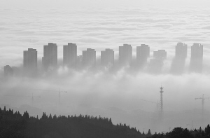 11月24日清晨,天津蓟县出现云海奇观,县城的楼群跃动在云雾之中,若隐若现。