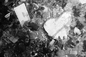 11月25日,在埃及首都开罗东北部,人们在楼房坍塌事故现场展开救援。
