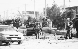 11月27日,在阿富汗首都喀布尔,安全人员查看爆炸袭击现场。