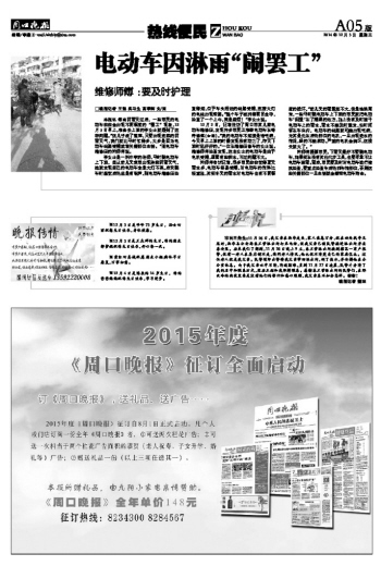 电动车因淋雨“闹罢工”
