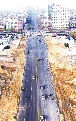 昨天,周口晚报“周晚一号”航拍飞行器拍摄的打通后的八一大道。晚报记者 朱海龙 摄