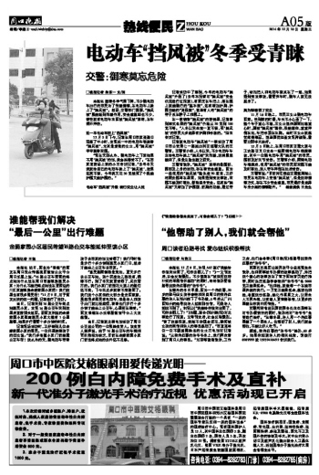 电动车“挡风被”冬季受青睐
