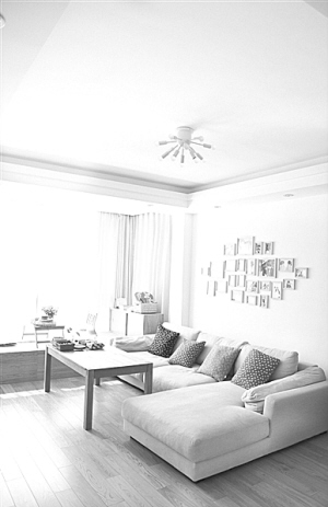 从居室的“材质”出发,二人选择了原木色系的木家具为主。除了衣柜请厂家定做,其余家具都是主人与木匠商量制作的,大部分家具材质是杉木板贴水曲柳浮雕面板,摸上去很有质感,刷一层清漆,看到了木头原来的模样。地面铺设了原木色木地板,家里整个暖调就出来了。除了木家具,其余空间也采用了淡暖色,米色的亚麻羽绒沙发和整体色彩很搭配,虽然看上去有些浅,但是不容易脏。沙发以抱枕装饰,颜色一下子就亮了起来。