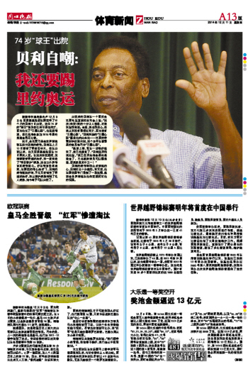 我还要踢 里约奥运74岁“球王”出院贝利自嘲: