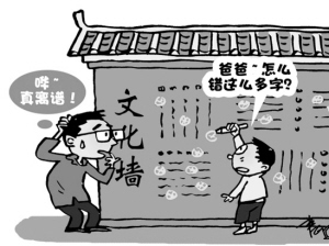 山西省太原市一面刻有近百首唐诗宋词的“文化墙”上共计出现了33处错别字。12月9日,太原市委宣传部的工作人员表示,设立单位的初衷是传播中国传统文化,但在古诗词的简繁体转化时出现了一定的纰漏。至于这面墙设立的具体时间和设立单位都还不清楚,有关部门将及时调查与之联系。