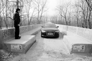 昨日上午,记者在孙嘴桥东入口处看到,桥面两侧都修有水泥墩,中间宽度两米左右,大多数司机得打几次方向才能勉强驶进两水泥墩之间。在桥面上,三轮车、电动车穿梭往来,把汽车逼得靠桥体一侧小心翼翼缓慢通行。