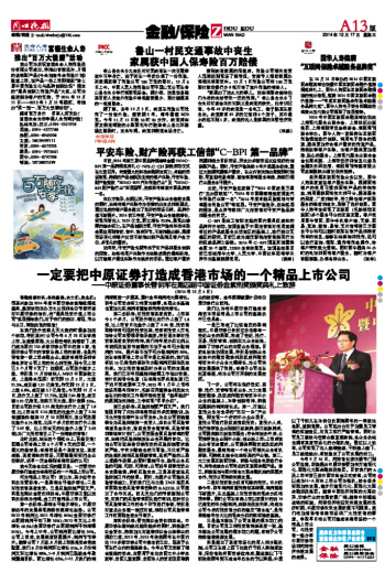 一定要把中原证券打造成香港市场的一个精品上市公司