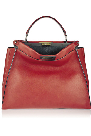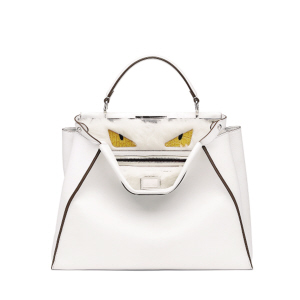 在从前,只要一提到芬迪,不少人都会首先联想到它们家的皮草,但近年来,越来越多人却是通过Peekaboo包而认识芬迪。Peekaboo的设计十分讨巧,隐藏性的内部装饰更是让人惊喜不已。据说Peek-a-boo是一种小孩子玩的躲猫猫游戏,设计师把这个元素运用到包包的设计中,包包的一边关起来,一边垂叠开放,展现里面和外面不同面料花色的组合。2012年秋季,Fendi推出了小邪恶中带着趣萌的包错误躲躲猫,有人把它称之为“小恶魔”版躲躲猫,瞬间萌翻了我们的小心脏,而本季皮草版的躲躲猫无疑也将继续引领IT Bag潮流。