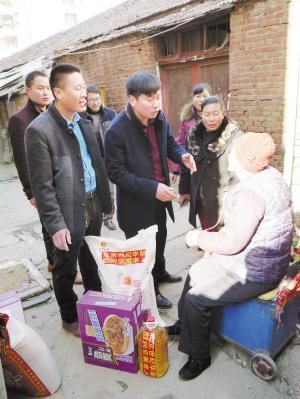 七一路办事处相关负责人吕春丽说,冬至当天,七一路办事处与一家爱心企业一同慰问辖区内10户困难家庭空巢老人,每位老人在当天获赠一袋大米、一袋面粉、一壶食用油和两箱方便面。据了解,捐赠方是一家来自北京的大型连锁超市,近期将在七一路办事处辖区内的周口儿童大世界试营业。企业周口分公司董事长崔凤喜说,近期,他通过七一路办事处打听到辖区内10名空巢老人家庭贫困,于是决定在冬至当天为他们提供一些捐助。崔凤喜表示,今后他和他的企业会继续关注和支持周口的慈善事业。