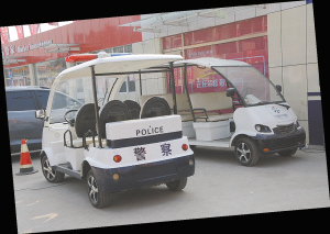 昨日上午,记者来到周口国际汽配城,发现有两辆不挂牌的“警车”停在院内(如图)。“这些‘警车’天天在这里转,却没见到车上有警察,都是汽配城的保安穿着类似警察的服装。”商户王先生说,“大家都知道警车必须由警察驾驶,就是用于巡逻起到震慑作用,也不能扮成警察吧?”