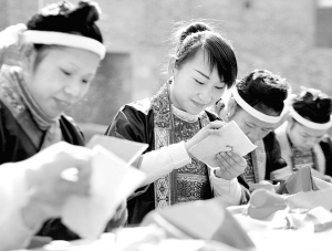 当日是2014年的最后一天,广西三江侗族自治县同乐乡举行刺绣比赛,侗族妇女用特殊的方式迎接新年的到来。侗族刺绣是三江的重要文化品牌,以其富有民族特色的风格吸引着消费者,产品远销国内外。