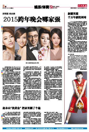 本报综合消息 2014年12月31日晚,东方、湖南、浙江三家卫视跨年晚会展开比拼,而湖南卫视和浙江卫视的现场都在广州,两家PK哪家强?